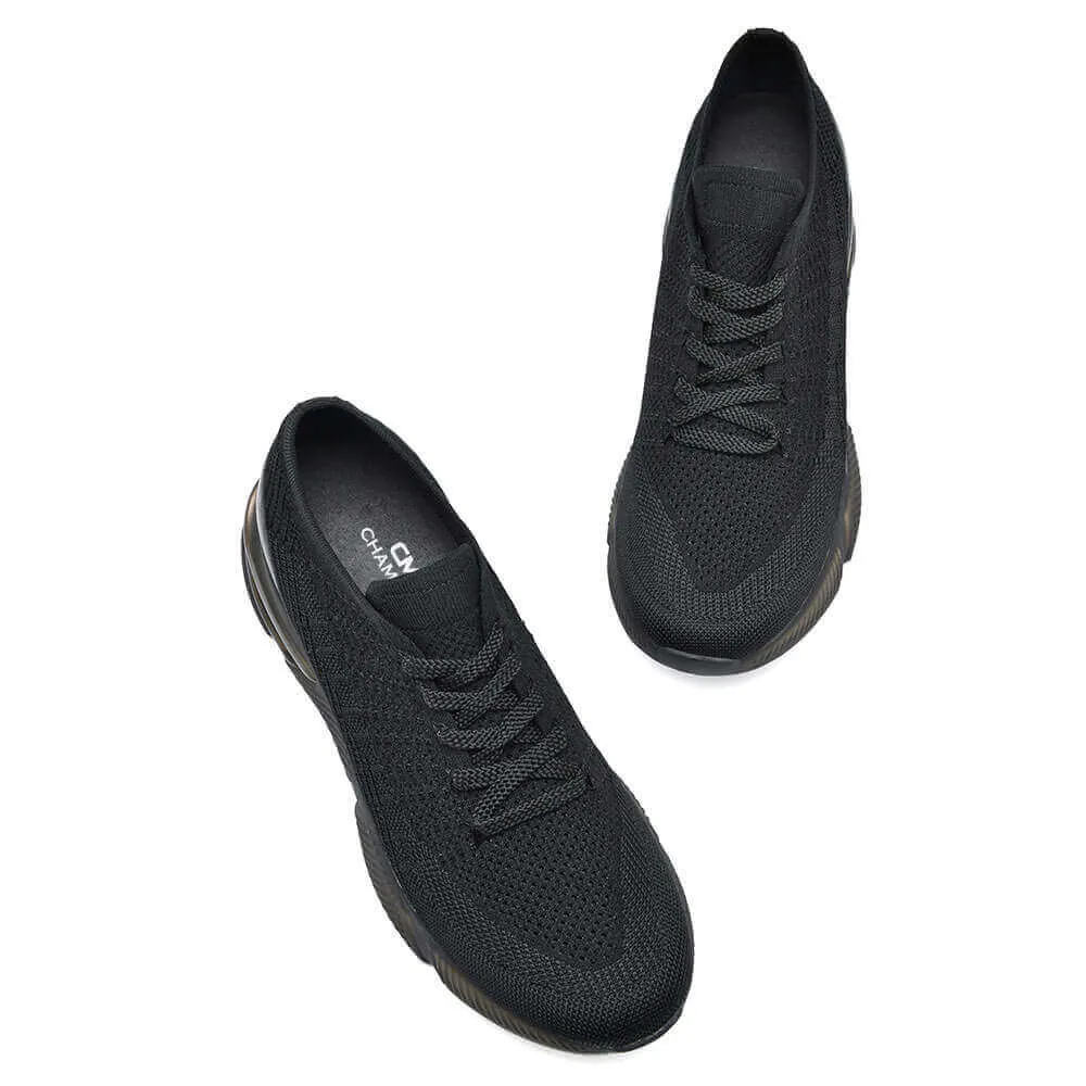 7CM / 2.76 Inches CMR CHAMARIPA Height Increasing Shoes For Men Hidden Heel Trainers Black Flyknit Sports Shoes