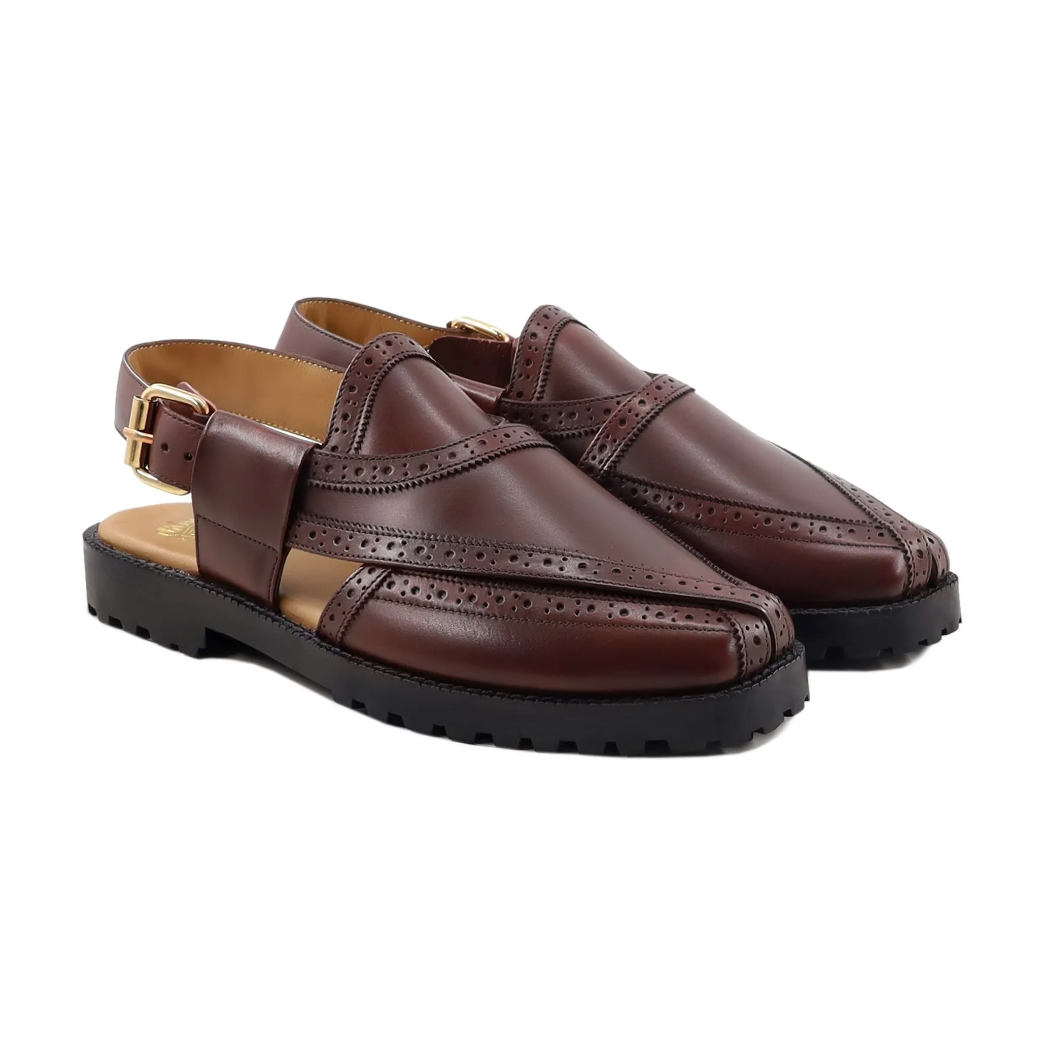 Amnesio - Men's Dark Brown Calf Leather Sandal with a commando sole in black color offers a sleek and refined option for both formal and casual occasions. The calf leather provides durability and a polished appearance. The commando sole ensures comfort and support with every step. Whether paired with tailored trousers or a summer dress, these sandals would add a touch of sophistication to any outfit.