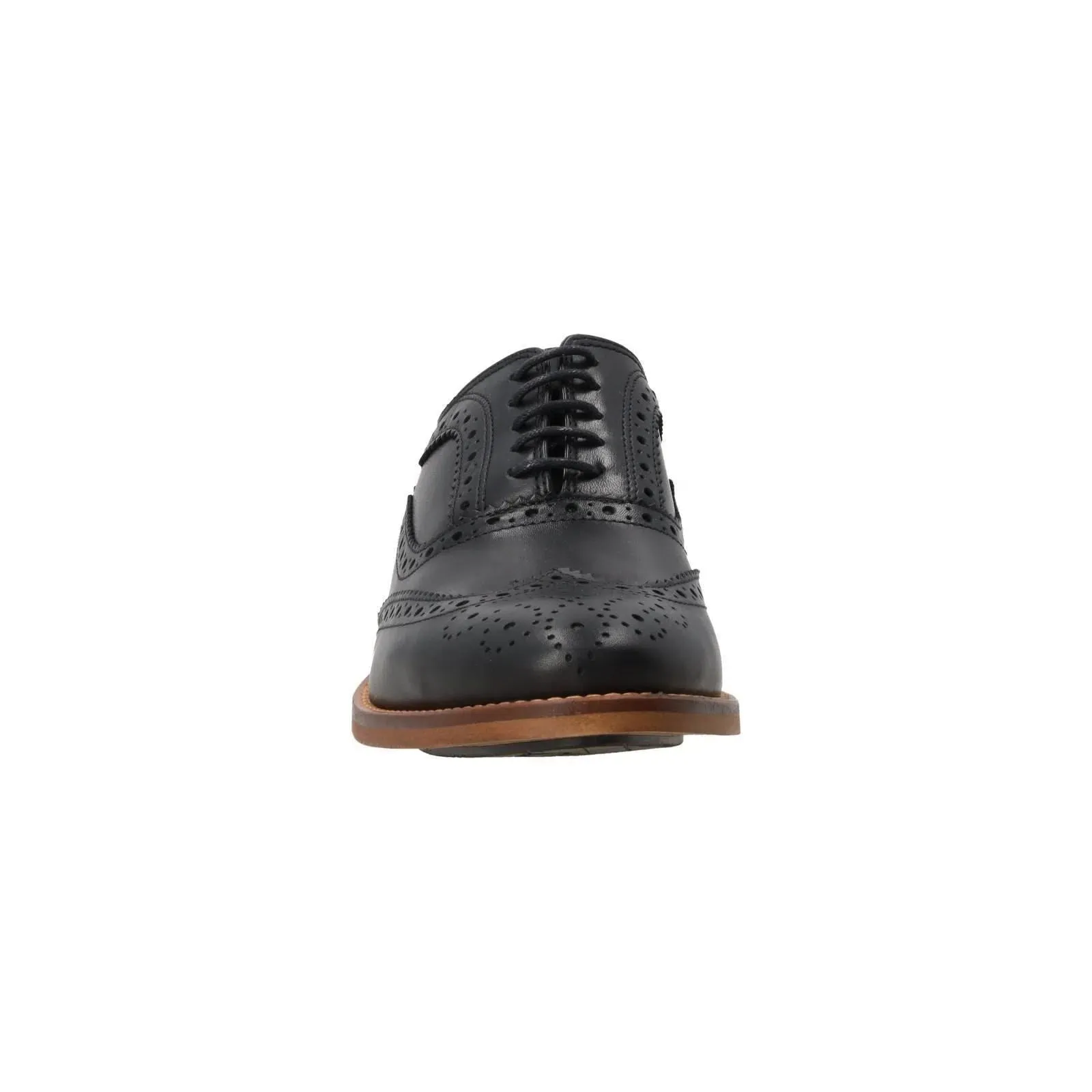 BARBOUR Isham Brogue Shoes Lace Up Black Leather