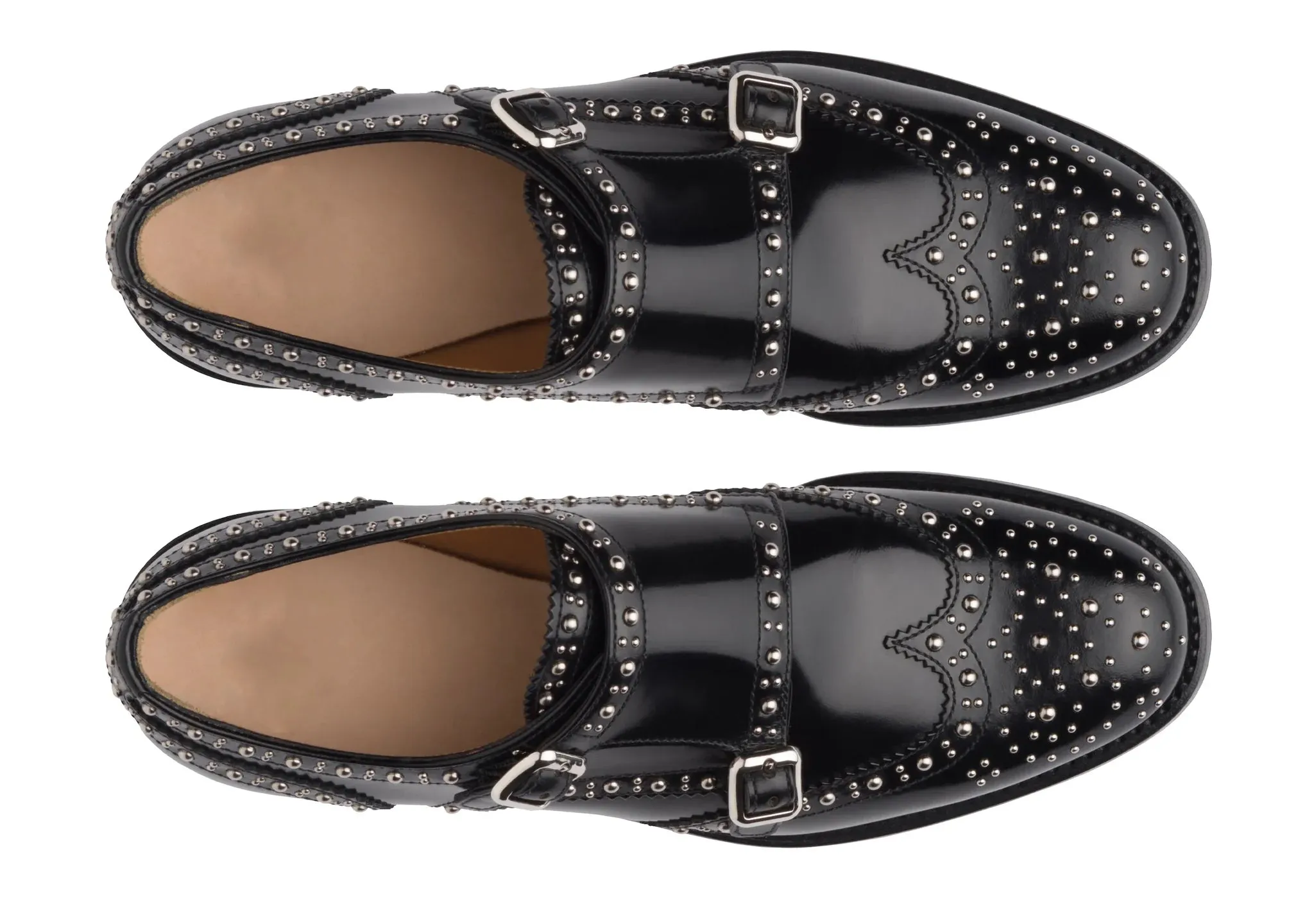 The Black Leather Spike Studded Atsabe Wingtip Monk Strap Shoes redefine bold elegance with a striking, edgy design. Crafted from premium black leather, these shoes feature intricate wingtip brogue detailing and are adorned with sleek spike studs for a statement look. The double monk strap with polished metal buckles adds a refined touch, while the cushioned insole ensures superior comfort. Built for durability, the sturdy leather sole provides excellent traction. Perfect for those who appreciate unique, fashion-forward footwear, these monk straps seamlessly blend classic craftsmanship with contemporary attitude, making them a standout choice for formal and high-street styling.