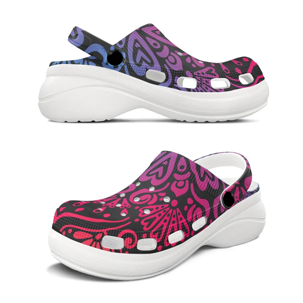 Elevate your style and height with our Bohemian Rainbow Women's Height Increasing Clogs! These trendy yet comfortable clogs feature a stunning rainbow design and a hidden platform to give you a boost. Perfect for any occasion, make a statement and walk tall with our clogs.