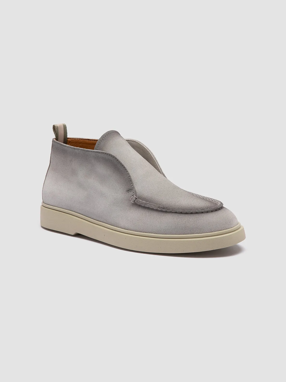The Bones 102 chukka boots showcase a sleek, minimalist design. Handcrafted in Italy, they feature refined stitching that adds subtle detail to the airbrushed beige suede upper, and a lightweight, extra-flexible EVA sole. CODE: BONES/102 AERO L.CACHEMIRE NUVOLE_F.DO AVORIO
