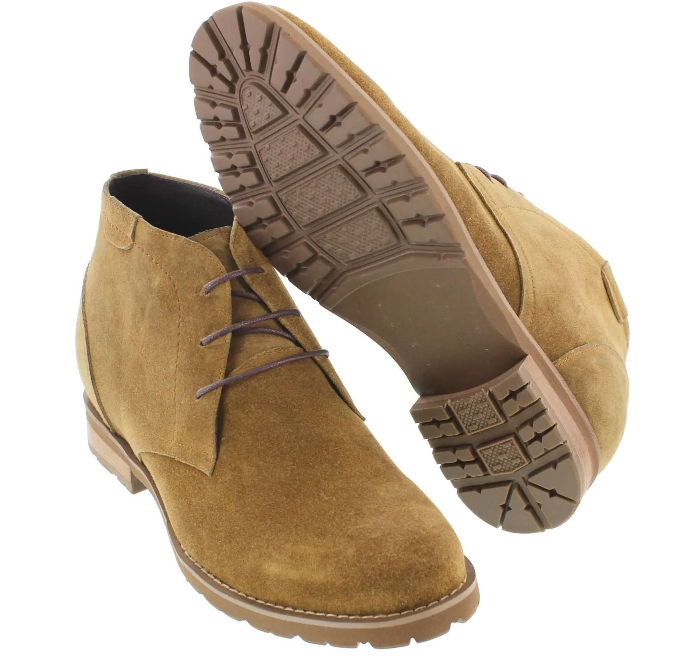 A stylish boot fit for everyday wear, the CALTO T65561 3 inches taller (Nubuck Khaki Tan) are classified under . They add to your height without anyone being the wiser. The unobtrusive man high heels design allows you to wear an ankle boot in Chukka style that is perfect for casual or dressy occasions while serving as the height increase shoes you desire. Plus, they are made with an eye to quality.