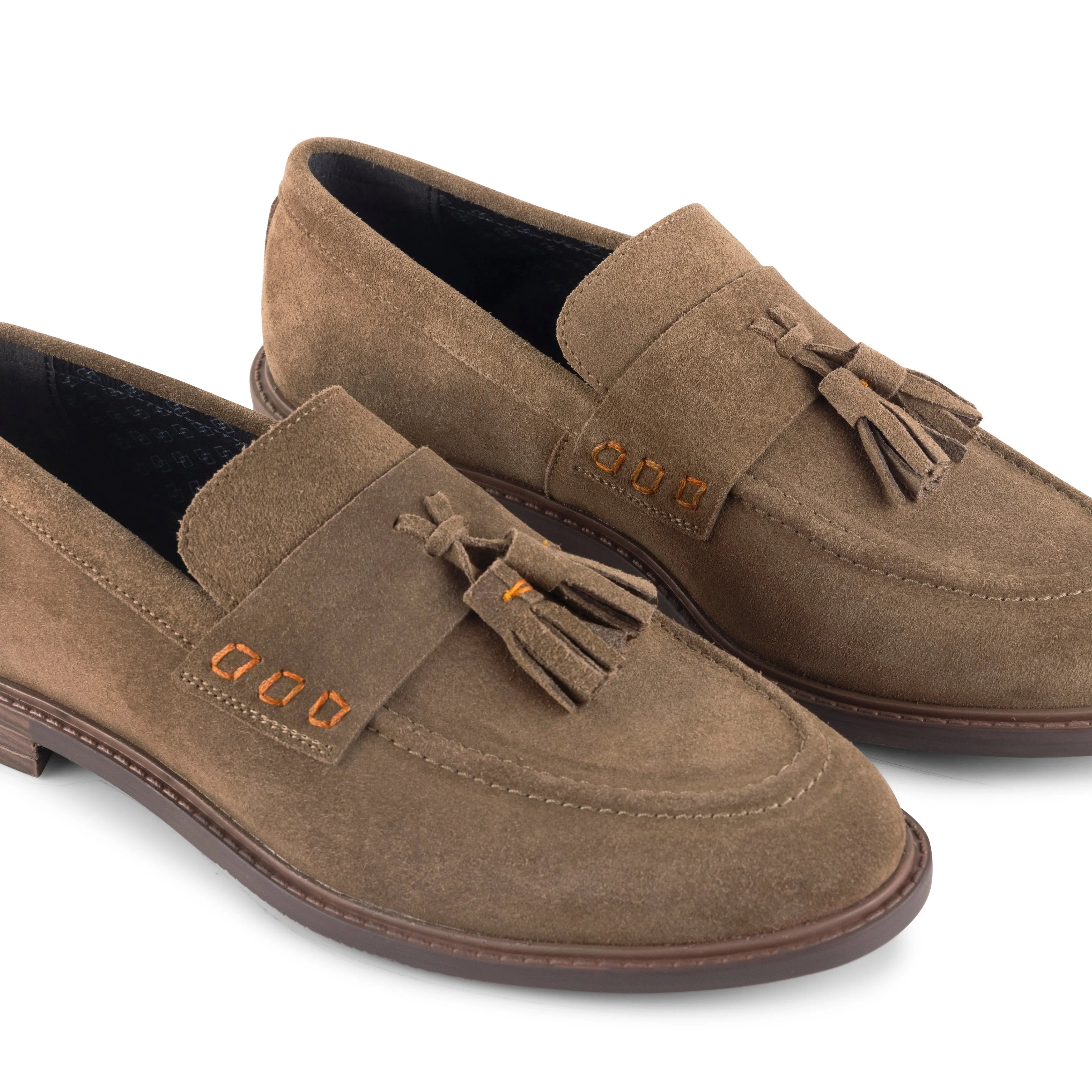Charleston Suede Leather Tassel Loafer - Butter Brown