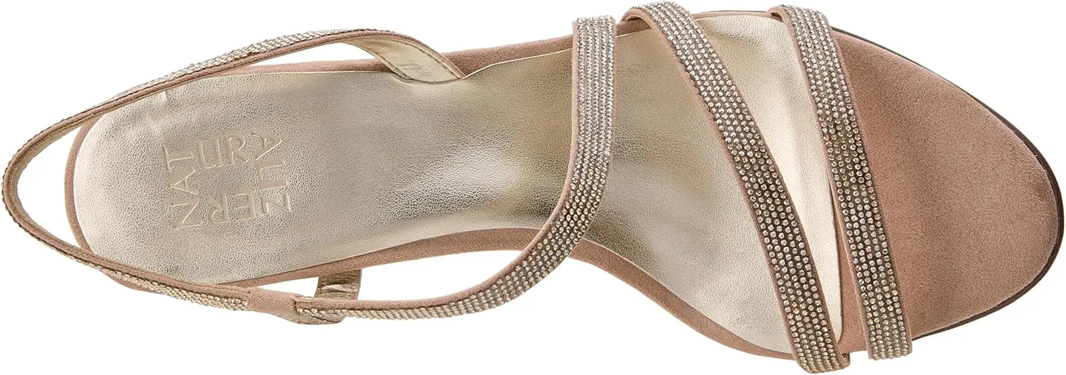 - All-day comfortable womens crystal embellished dress heeled sandals with slingback strap