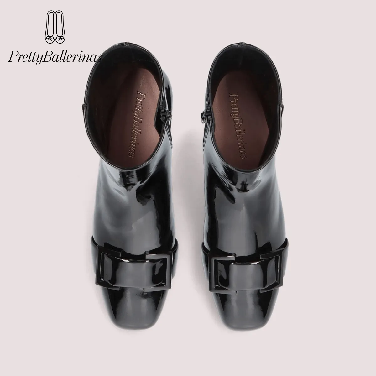 Sagira Chelsea Boots in black patent leather with black chain details, rubber sole and leather insole