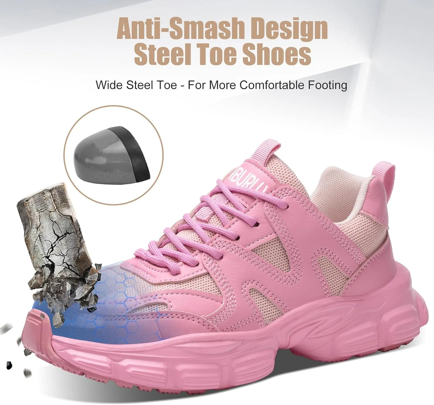 Steel Toe Shoes for Women Men Wide Non Slip Composite Work Sneakers Indestructible Comfortable Safety Tennis Shoes Lightweight Breathable Construction Sneakers Puncture Proof Ergonomic Design
