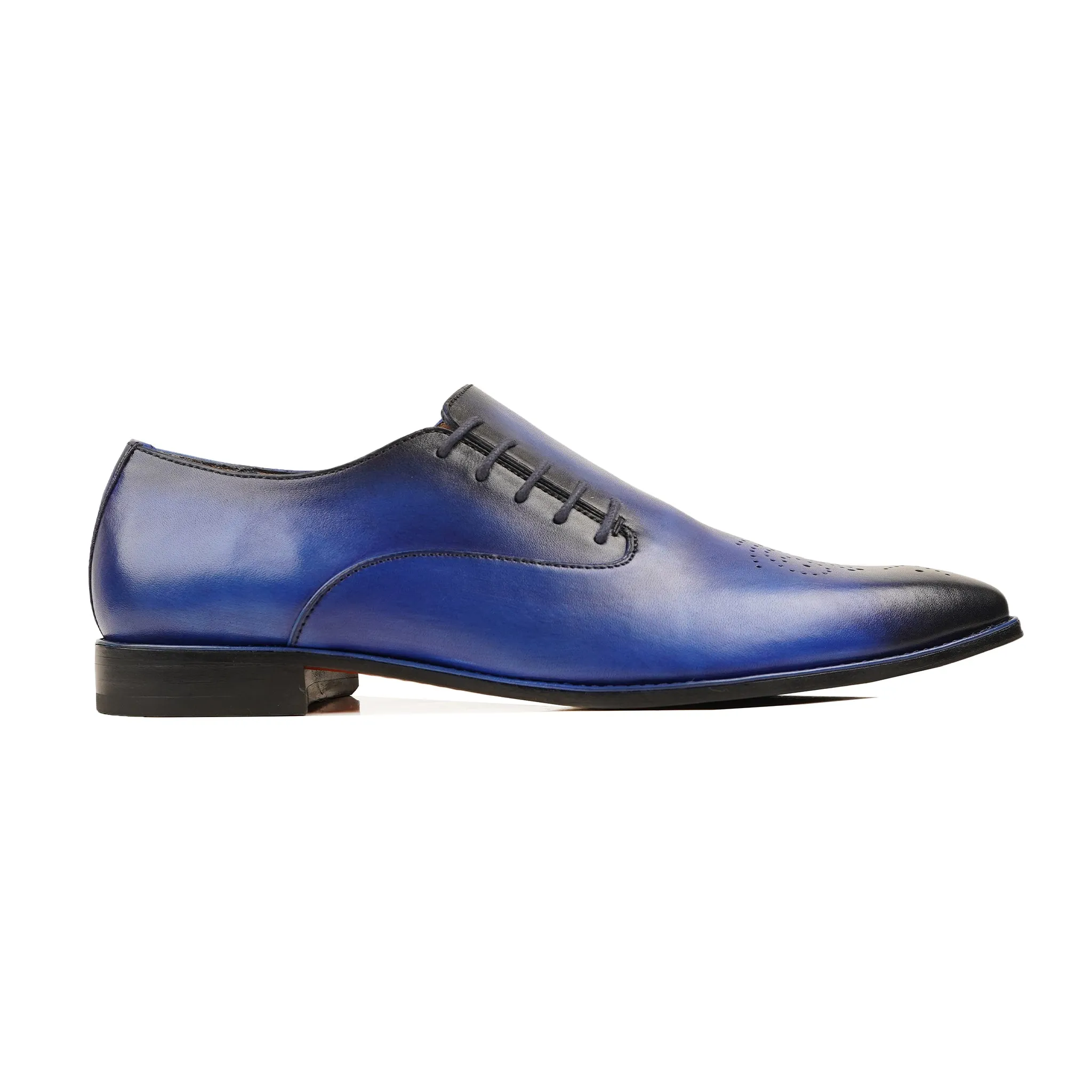 Tangos - Men's Burnish Blue Calf Leather Wholecut Shoe feature a closed lacing system and leather rubber sole. A burnish blue calf leather wholecut shoe with a leather rubber sole is a combination of style and refinement. The leather rubber sole is known for its durability and grip, making it ideal for all weather conditions. The burnish blue color provides a classic and versatile look. These wholecuts are suitable for both formal occasions and every day wear.
