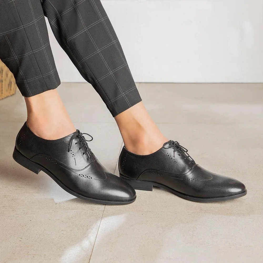 Be a class apart in our Yody black men’s lace up shoes. Meant to elevate your style, these lace ups feature an intricate laser-cut pattern and have been crafted in premium quality leather. For an upcoming formal event, style these formal shoes for men with a beige shirt, brown trousers, and a classic watch.