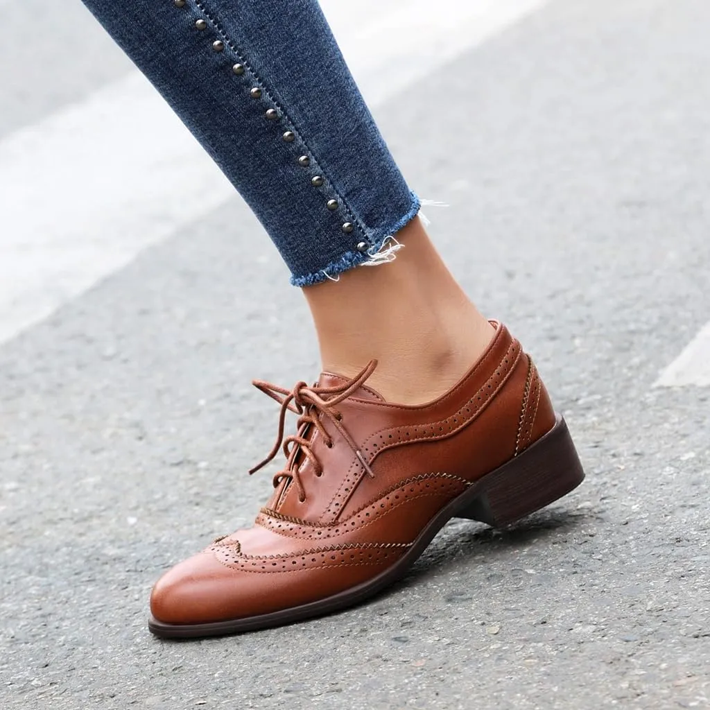 - TRENDY OXFORDS SHOES FOR WOMEMS DESIGN: These Trendy Classic School Vintage Oxford Brogues Shoes with Lace Up Closure Easy On/Off; Classic Wingtip Perforated Design making them timeless and versatile. They are perfect combination for any outfit. Make Any Easy Outfit Look Instantly Stylish with These Comfortable Fashion Shoes. Perfect for Dress, Short, T-shirt, Jeans, School Uniforms,etc. Any casual or formal wear. -Either way look will be AMAZING.
